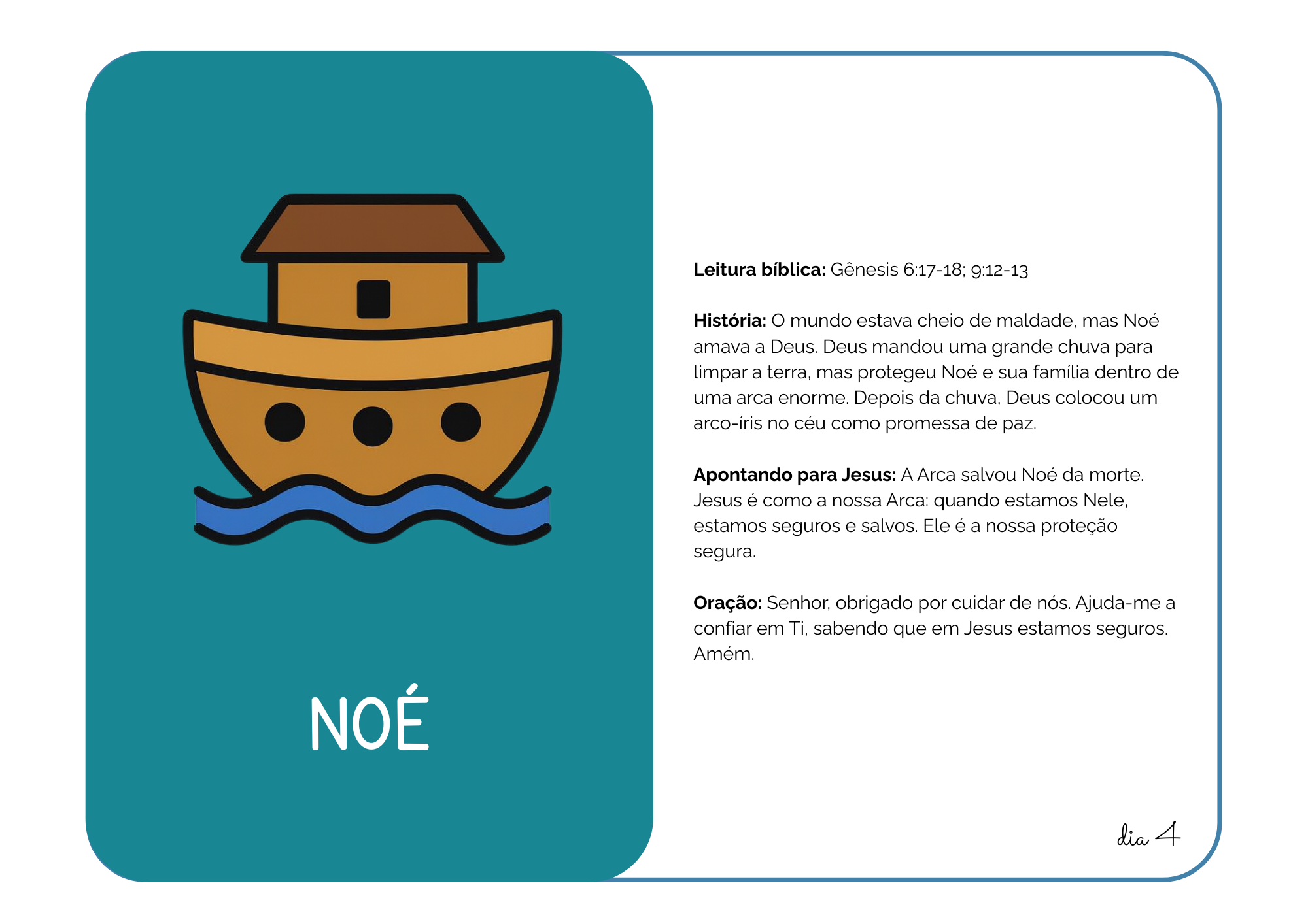 São 25 histórias. Comece pela leitura bíblica, leia o pequeno devocional, ore e então faça a atividade das crianças.